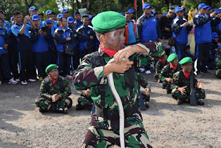 Usai memperagakan gerakan anggota TNI, ke-42 siswa tersebut langsung mengusung ular berbisa kedalam peragaan mereka. Aksi mereka pun mendapat sorotan dari seluruh peserta upacara dan sempat membuat para penonton tegang. “Keberanian anak-anak itu sungguh luar biasa” kata sejumlah penonton