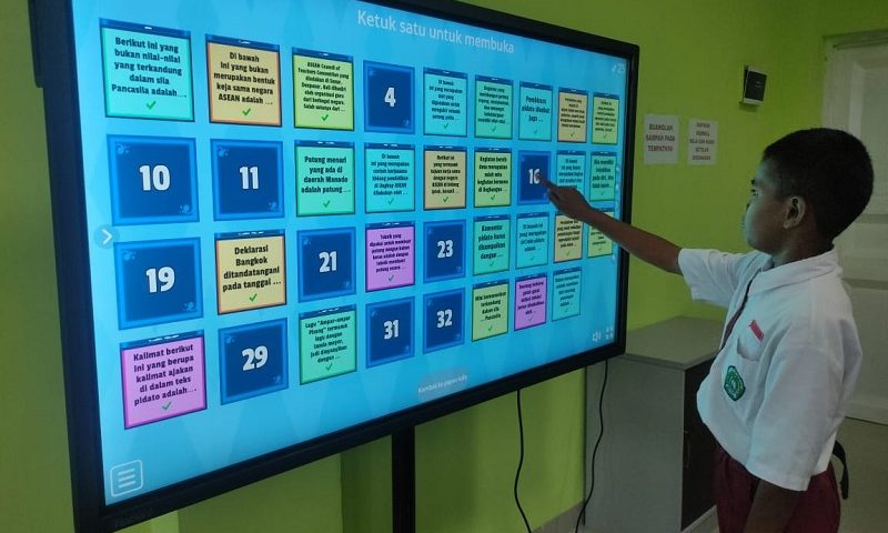 Guru kelas VI Madrasah Ibtidaiyah Negeri I Muara Enim Altus Baruati mengajak siswa bermain games cepat tepat dengan menggunakan papan pintar interaktif. Games cepat tepat yang terdiri dari 35 soal meliputi pelajaran PKN, B. Indonesia, IPA, IPS dan SBdP dengan bertemakan Kepemimpinan diikuti oleh siswa dengan sangat antusias, Senin (19/02).