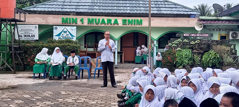 Guru Pendidikan Agama Islam (PAI) Madrasah Ibtidaiyah Negeri I Muara Enim Ahsanul Fikri  menyampaikan isi kandungan dari surah At Tiin ayat 4 yang artinya Sesungguhnya  kami (Allah) telah menciptakan manusia dalam bentuk yang sebaik-baiknya. Sebelum memberikan tausyiahnya, Ia memberikan pertanyaan kepada siswa surah apa yang Ia bacakan dan apa arti dari ayat tersebut, Jumat (26/01).