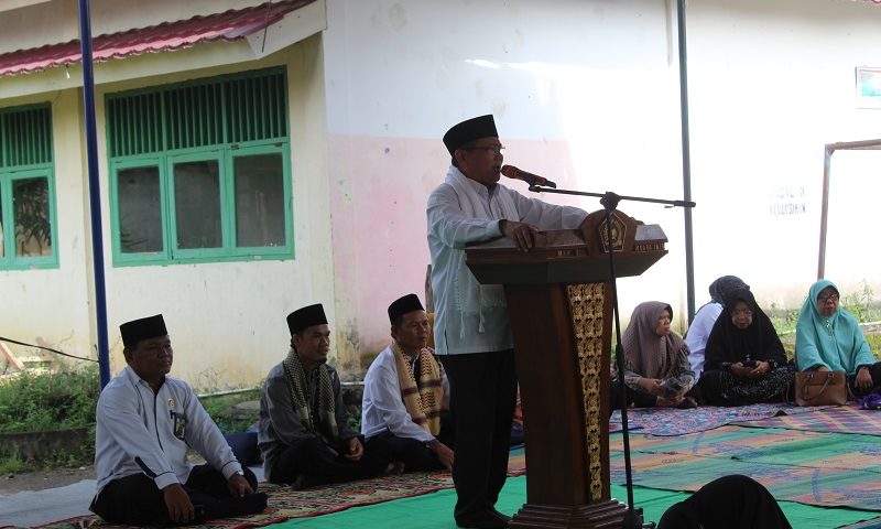 Kepala Kantor Kementerian Agama Kab. Muara Enim H. Hasanudin memberikan tausyiah pada kegiatan pesantren ramadhan 1444 H bertempat di lapangan madrasah, Selasa (28/03).
