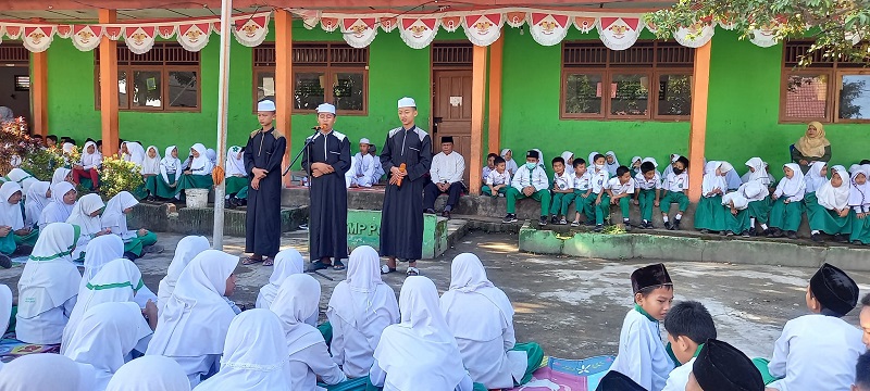 Kepala Madrasah Ibtidaiyah Negeri I Muara Enim Juniar, dewan guru serta siswa dan siswi menyambut dengan gembira kedatangan safari ramadhan dari pesantren Laroibah.