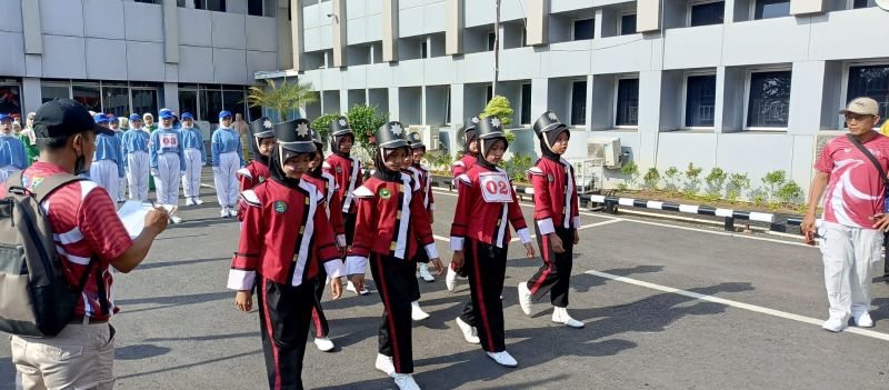 Kepala Madrasah Ibtidaiyah Negeri I Muara Enim Sumini memberikan supportnya kepada tim gerak jalan indah, semoga diberikan kesehatan, kekuatan dan semangat agar dapat sampai ke garis finish.