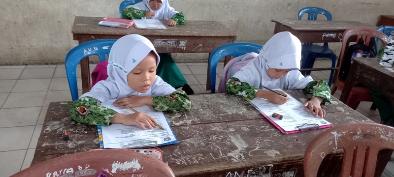 Siswa Madrasah Ibtidaiyah Negeri I Muara Enim dari kelas I s.d kelas VI mengerjakan soal Penilaian Akhir Semester (PAS) gazal dengan cermat dan teliti terlihat dari mereka mengerjakannya sangat hati-hati dan mempergunakan waktu yang ada dengan sebaik-baiknya, Sabtu (02/12).