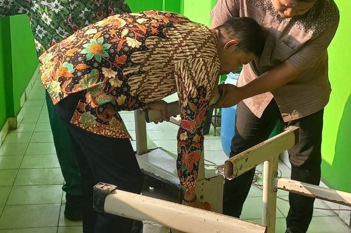 Wakil kepala madrasah bidang sarana prasarana Muslimin melakukan pengecekan mobiler kelas yakni meja, kursi, dan sarana lainnya untuk diperbaiki atau diganti dengan yang baru jika sudah rusak berat, Rabu (20/07).